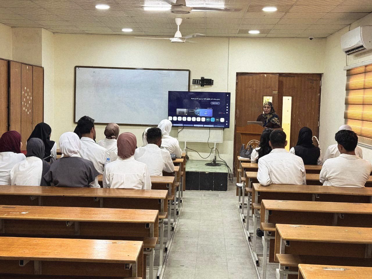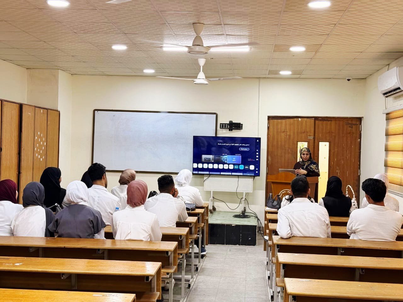 قدمت المحاضرة كل من الدكتورة نادية علي حسين (مسؤولة الإرشاد التربوي) والمدرس المساعد أزهار كامل ناصر(مسؤولة وحدة الوثائق).