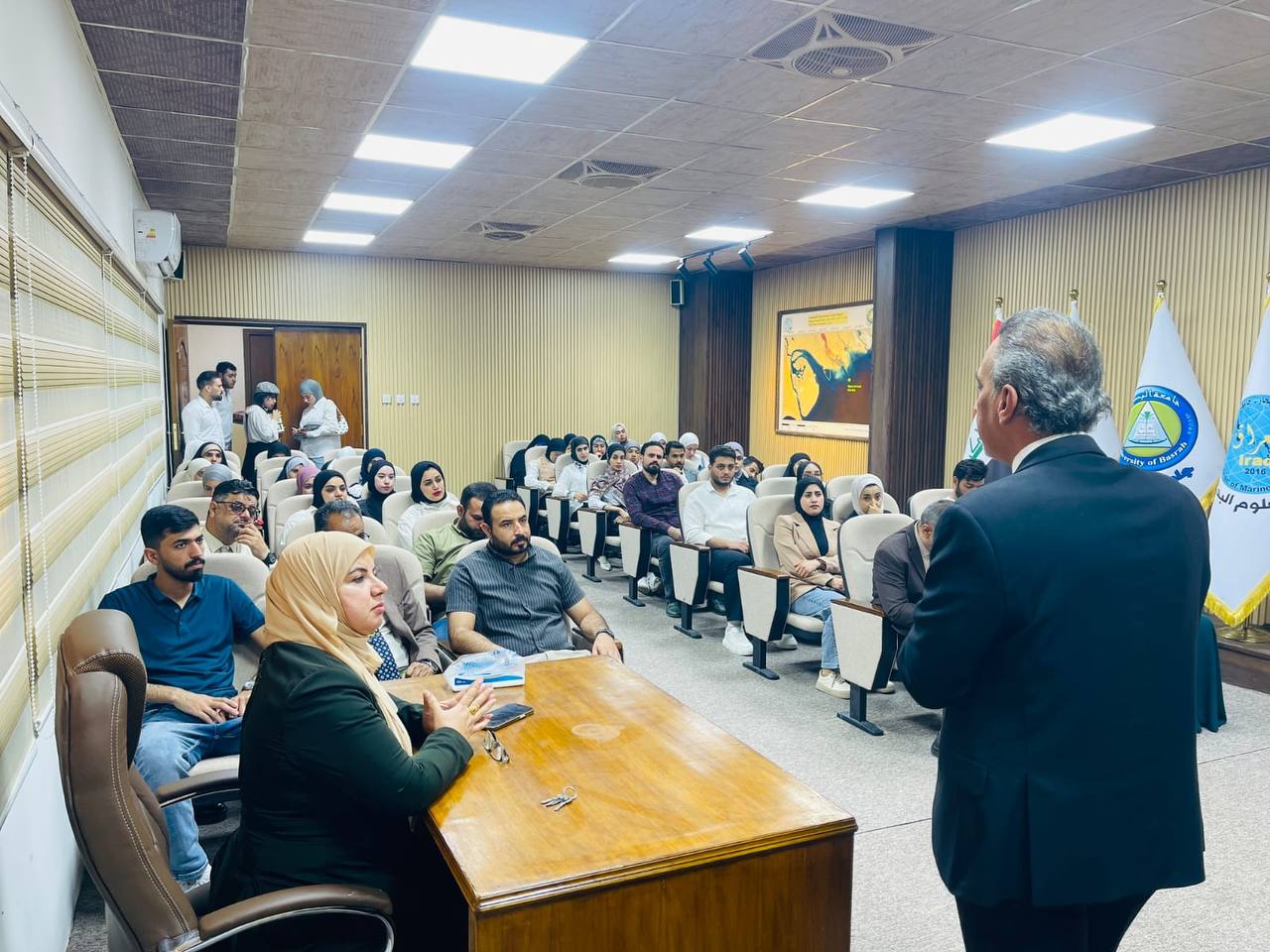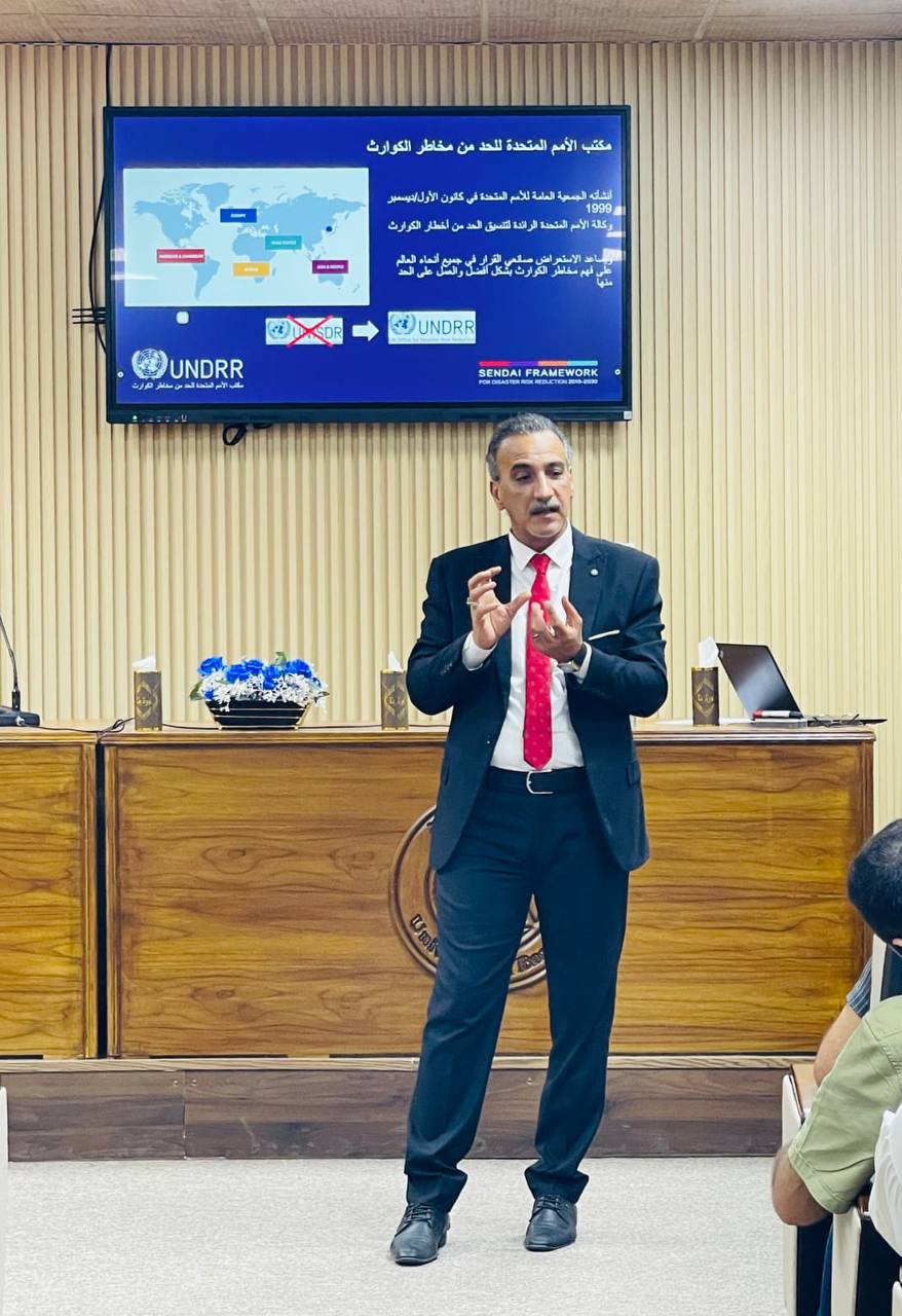 نظمت وحدة التعليم المستمر في كلية علوم البحار بجامعة البصرة حلقة نقاشية بعنوان ((بناء القدرة على صمود المدن والنظام الصحي في مواجهة الكوارث باستخدام مفاهيم الأمم المتحدة UNDRR))، قدمها الدكتور أحمد حنون جاسم من دائرة حماية وتحسين البيئة في المنطقة الجنوبية، يوم الأربعاء الموافق 15 أكتوبر 2025 في قاعة المؤتمرات.