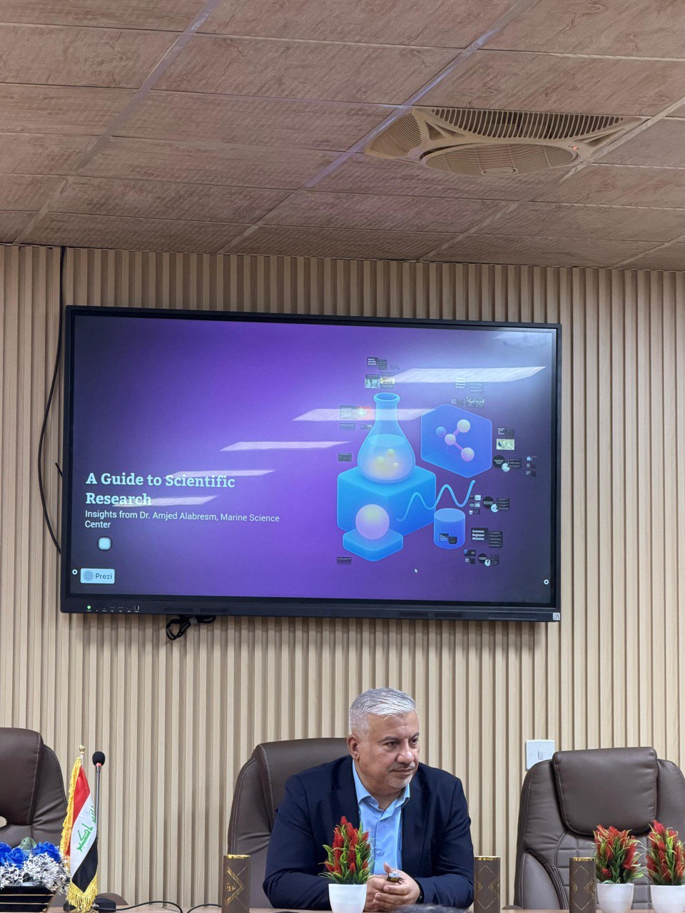 أقامت وحدة التعليم المستمر في كلية علوم البحار/ مركز التطوير والتعليم المستمر بجامعة البصرة حلقة نقاشية بعنوان " الدليل إلى البحث العلمي"، وذلك في قاعة المؤتمرات بكلية علوم البحار.